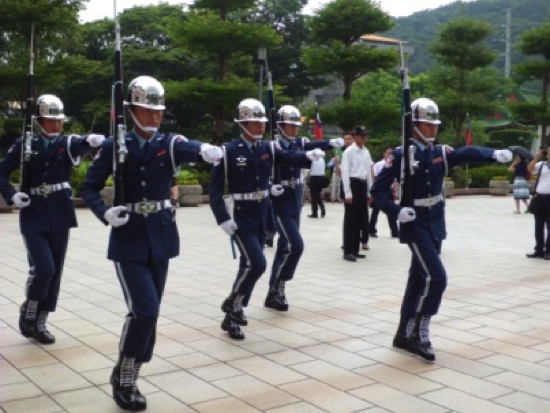 そして、ここ「忠烈祠」の呼び物は、毎正時に行われる衛兵交替式にあります。「忠烈祠」の衛兵は、陸・海・空軍から選抜されたエリート将兵たちであり、制服によって、グリーンは陸軍、ブルーは空軍、白は海軍となっています。